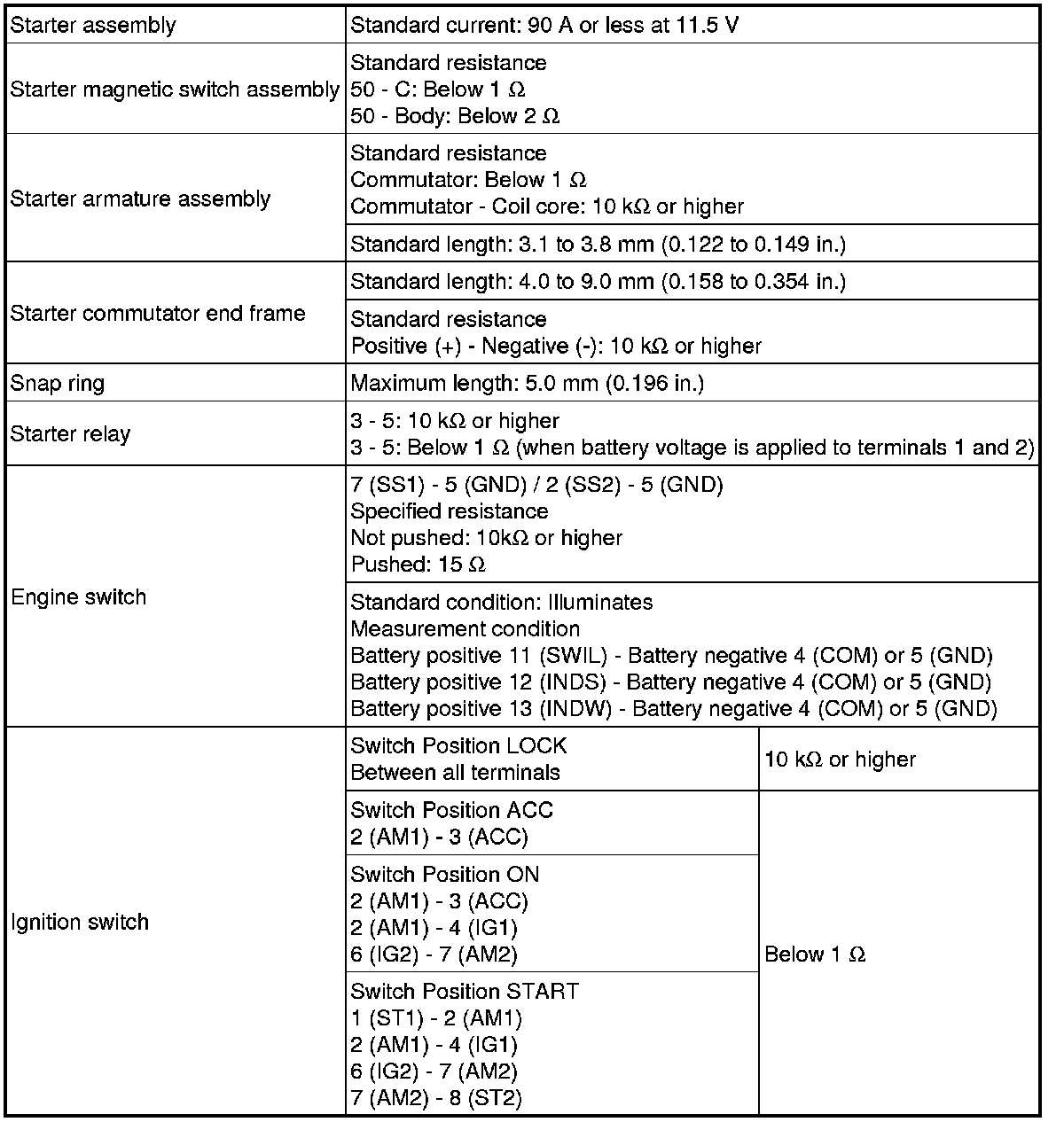 SPECIFICATIONS: 1AR-FE STARTING: SERVICE DATA