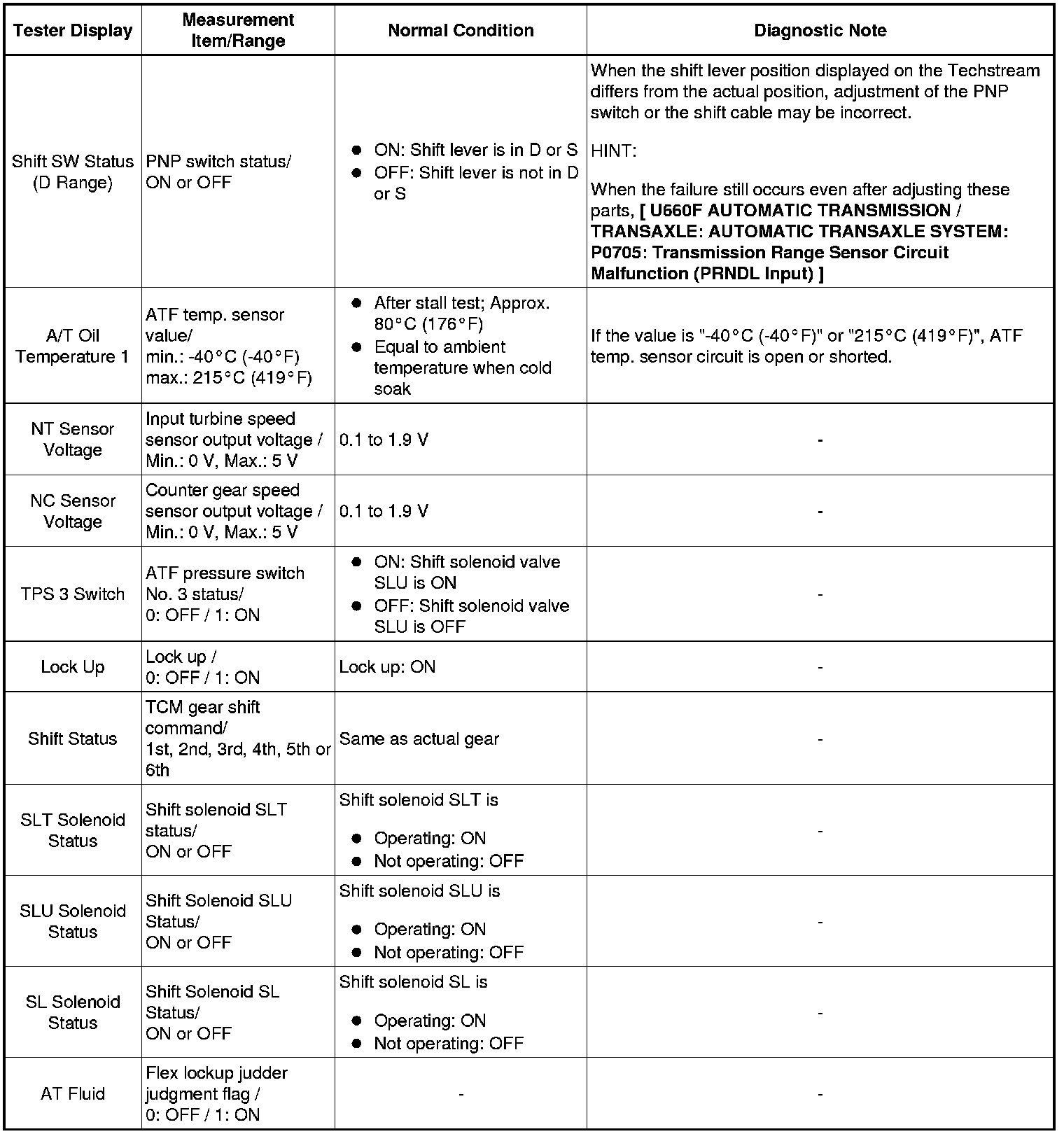 U660F AUTOMATIC TRANSMISSION / TRANSAXLE: AUTOMATIC TRANSAXLE SYSTEM: DATA LIST / ACTIVE TEST