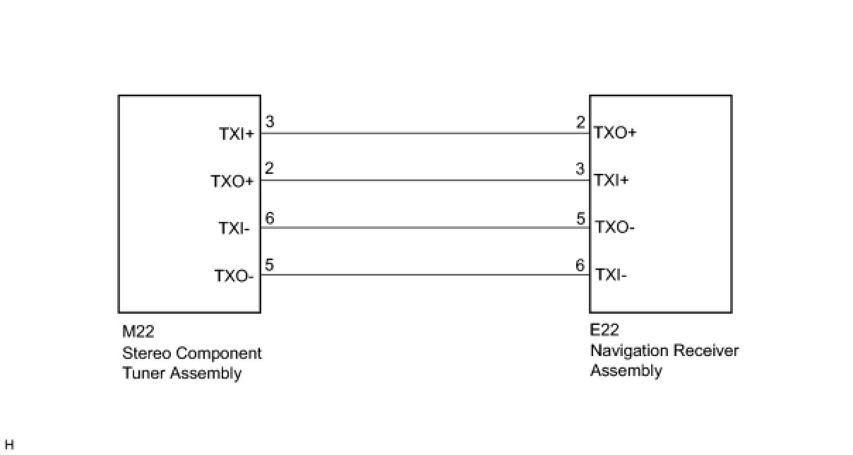 The navigation receiver assembly and stereo component tuner assembly are connected by the AVC-LAN plus communication lines.