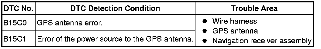 These DTCs are stored when a malfunction occurs in the GPS antenna.
