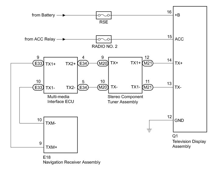 NG -- CHECK HARNESS AND CONNECTOR (TELEVISION DISPLAY ASSEMBLY POWER SOURCE)