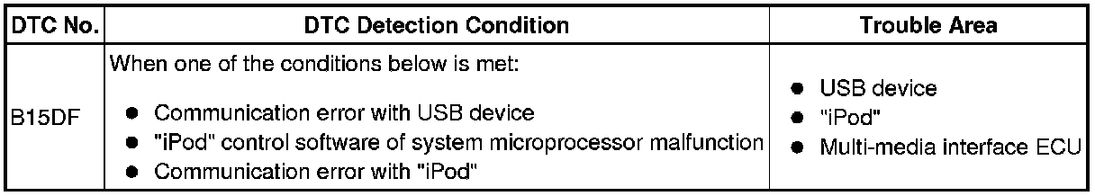 This DTC is stored when a malfunction occurs in communication with USB device or "iPod".