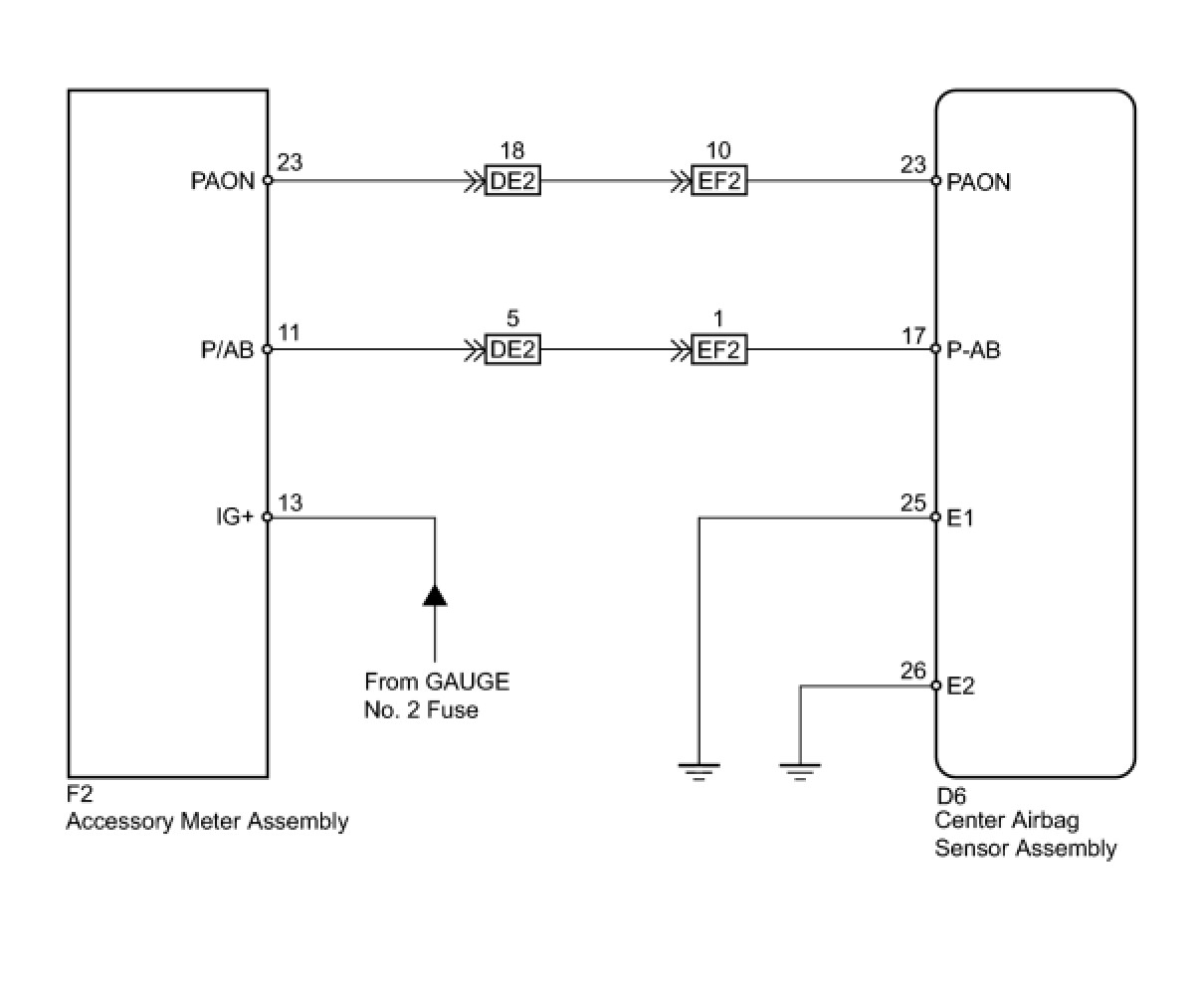 The passenger airbag ON/OFF indicator circuit consists of the center airbag sensor assembly and accessory meter assembly (passenger airbag ON/OFF indicator).