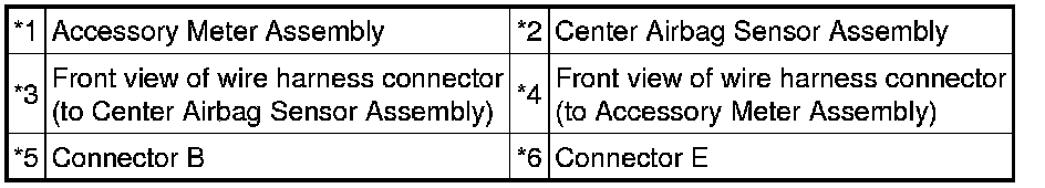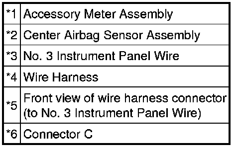 (c) Check that the connectors are properly connected to the center airbag sensor assembly and accessory meter assembly. Also check that the connectors that link the instrument panel wire, No. 2 instrument panel wire and No. 3 instrument panel wire are properly connected.