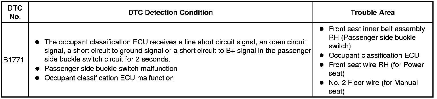 SUPPLEMENTAL RESTRAINT SYSTEMS: OCCUPANT CLASSIFICATION SYSTEM: B1771: Passenger Side Buckle Switch Circuit Malfunction