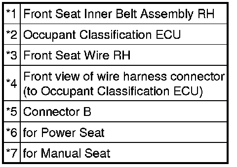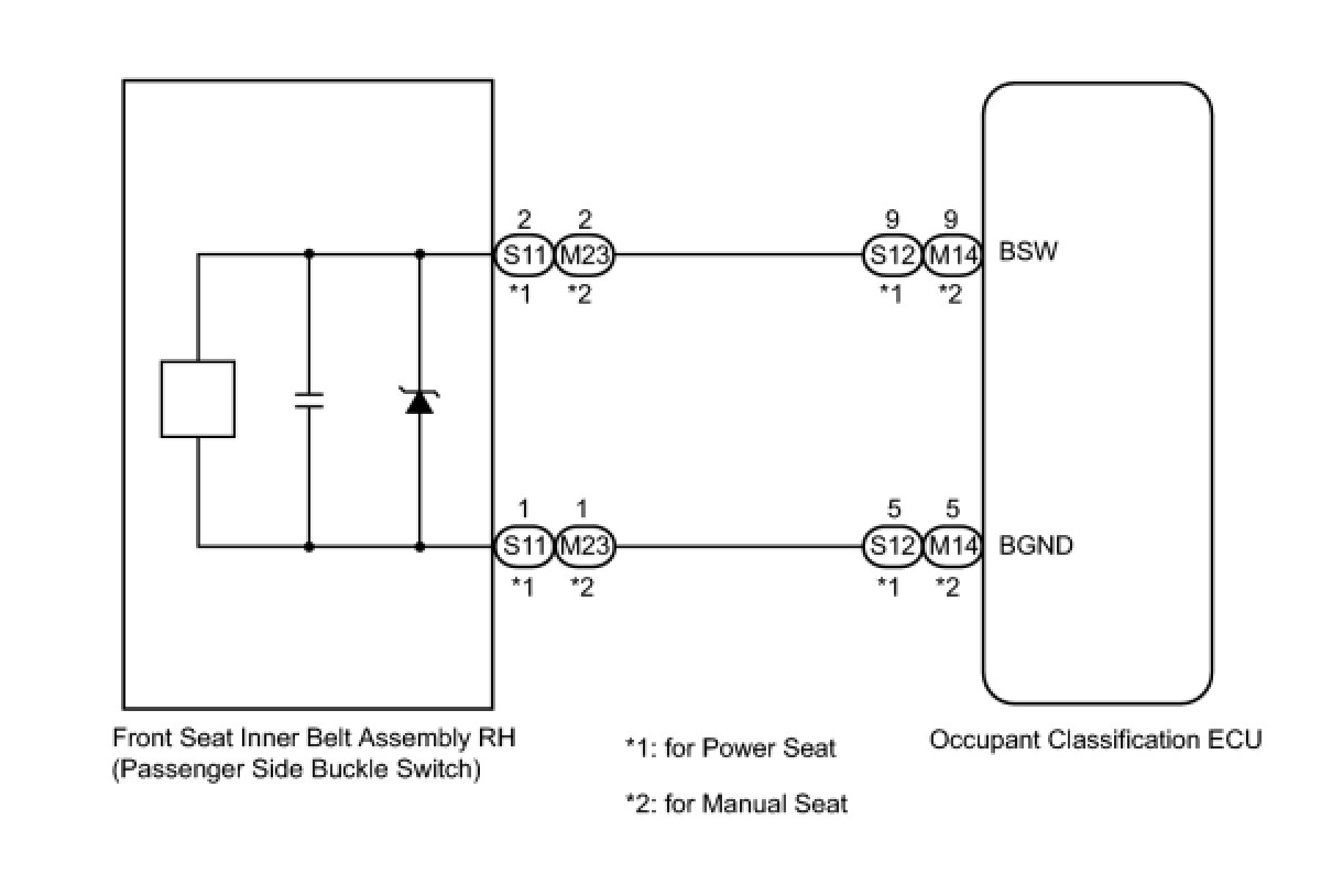 The passenger side buckle switch circuit consists of the occupant classification ECU and front seat inner belt assembly RH.