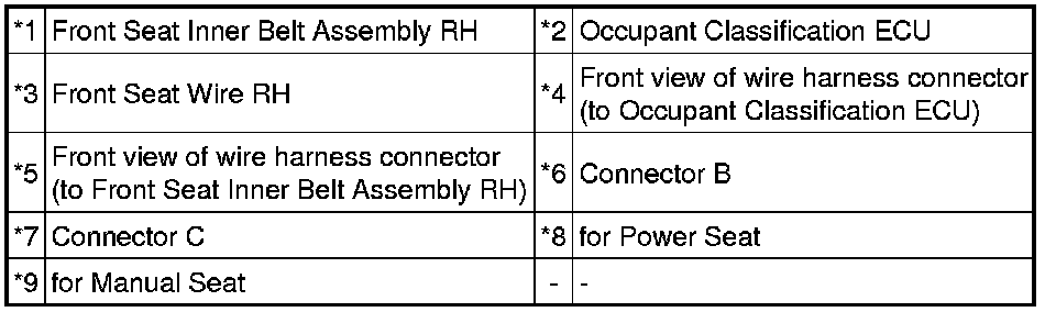 (c) Check that the connectors are properly connected to the occupant classification ECU and front seat inner belt assembly RH.