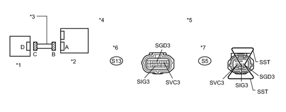 (c) Using SST, connect terminals 1 (SVC3) and 3 (SGD3), and connect terminals 2 (SIG3) and 3 (SGD3) of connector C.