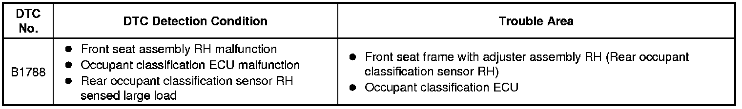 DTC B1788 is output when the occupant classification ECU receives a collision detection signal sent by the rear occupant classification sensor RH if an accident occurs.