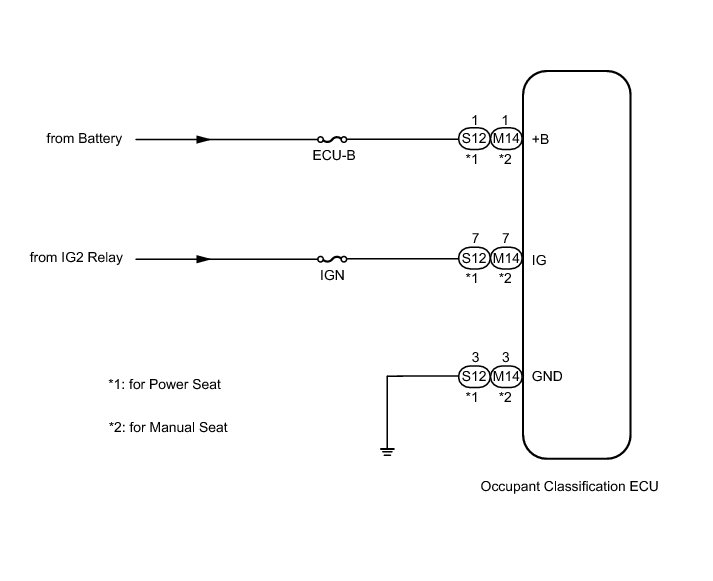 This circuit consists of the occupant classification ECU and power source circuit (battery, fuse and wire harness).