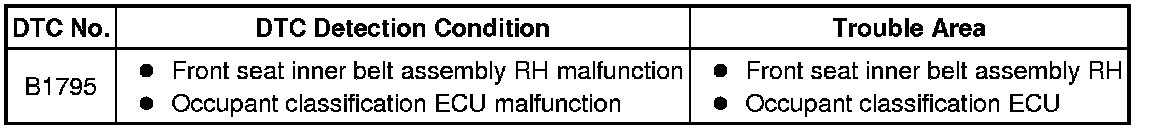 DTC B1795 is recorded when a malfunction is detected in the occupant classification ECU.