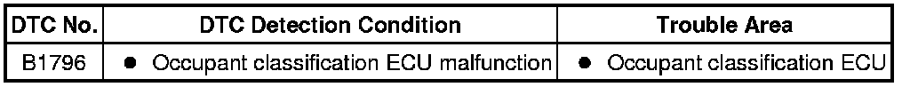 In this mode, if occupant classification ECU detects an internal malfunction, DTC B1796 is output.