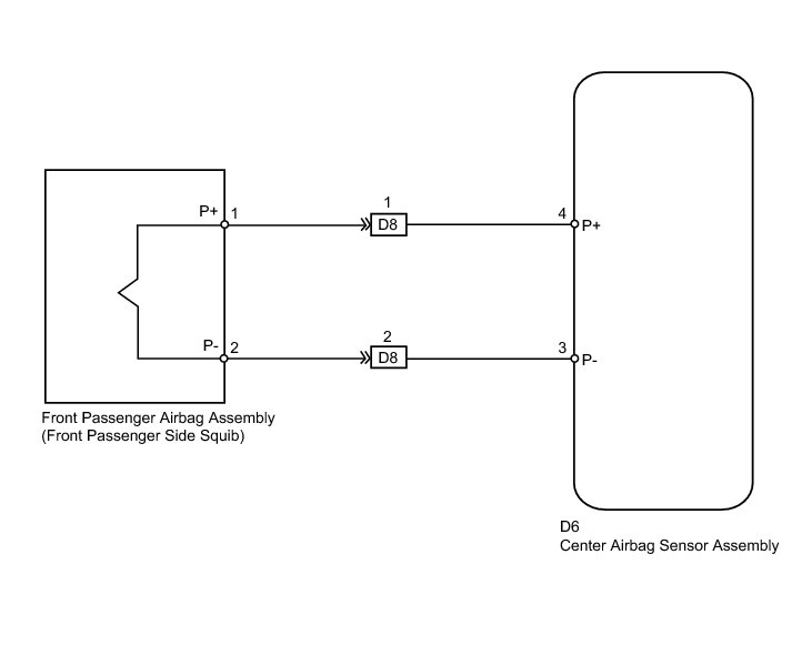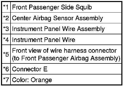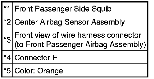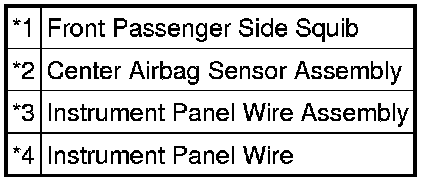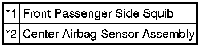 The front passenger side squib circuit consists of the center airbag sensor assembly and front passenger airbag assembly.