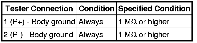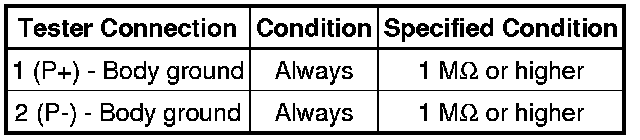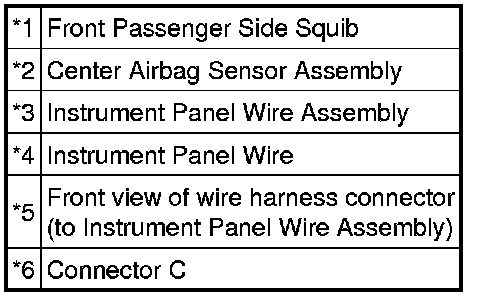 Never connect an electrical tester to the front passenger airbag assembly (front passenger side squib) for measurement, as this may lead to a serious injury due to airbag deployment.