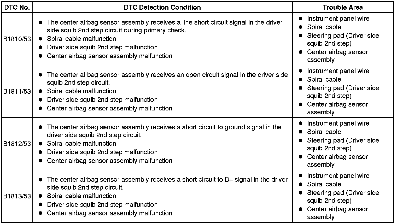 B1813/53 - Short to B+ in Driver Side Squib 2nd Step Circuit