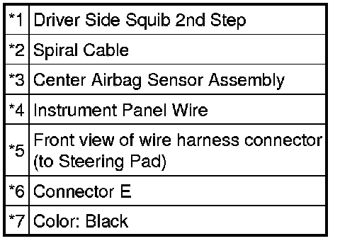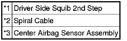 * The driver side squib 2nd step circuit consists of the center airbag sensor assembly, spiral cable and steering pad.