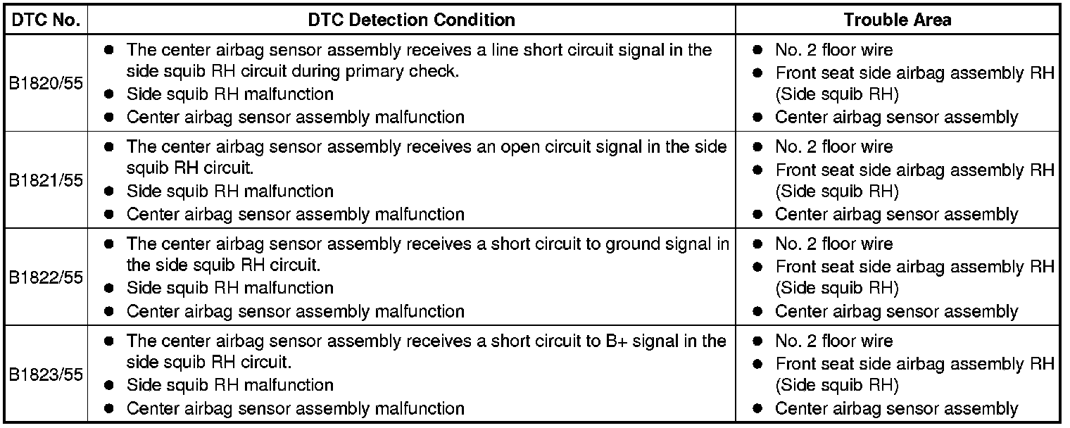 Codes other than DTCs B1820, B1821, B1822, B1823 and 55 may be output at this time, but they are not related to this check.