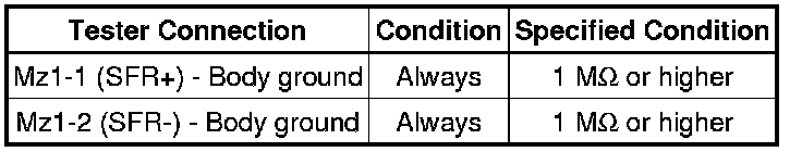 Never connect an electrical tester to the front seat side airbag assembly RH (side squib RH) for measurement, as this may lead to a serious injury due to airbag deployment.