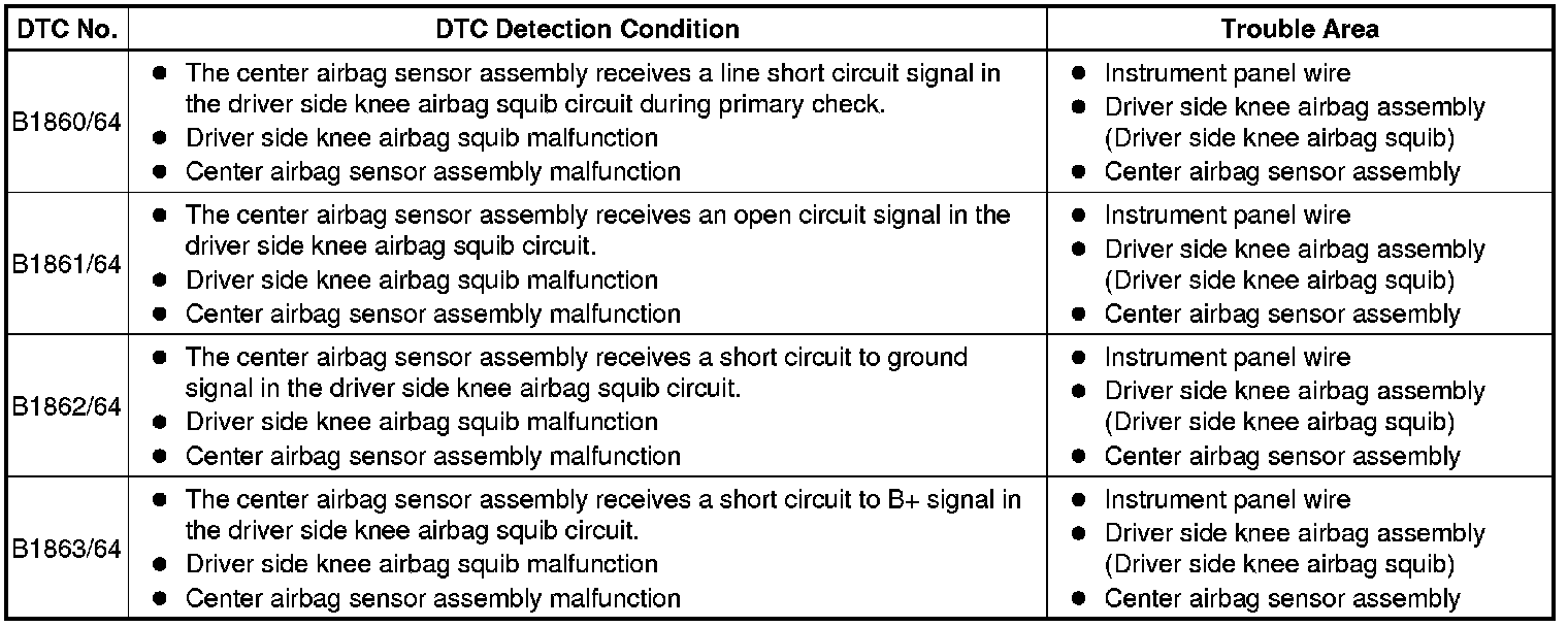 SUPPLEMENTAL RESTRAINT SYSTEMS: AIRBAG SYSTEM: B1860/64-B1863/64: Short in Driver Side Knee Airbag Squib Circuit