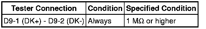 Never connect an electrical tester to the driver side knee airbag assembly (driver side knee airbag squib) for measurement, as this may lead to a serious injury due to airbag deployment.