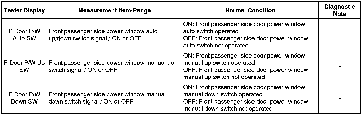 5. READ VALUE USING TECHSTREAM (P-Door Motor)