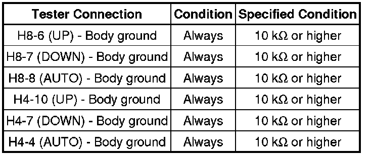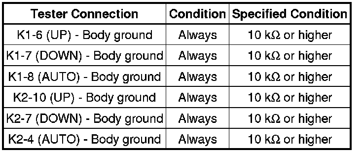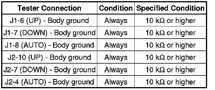NG -- CHECK HARNESS AND CONNECTOR (MASTER SWITCH - DRIVER SIDE MOTOR)