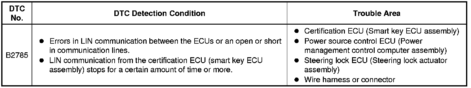 This DTC is stored when LIN communication from the certification ECU stops for a certain amount of time.