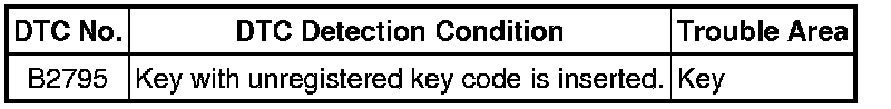 THEFT DETERRENT / KEYLESS ENTRY: ENGINE IMMOBILISER SYSTEM (w/o Smart Key System): B2795: Unmatched Key Code