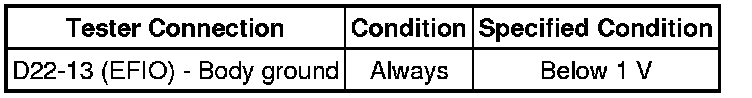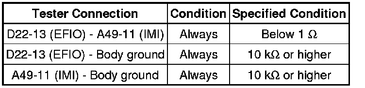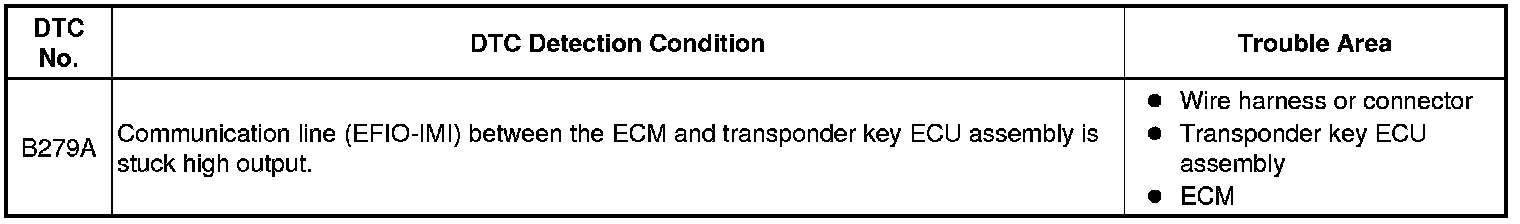 If the communication line (EFIO-IMI) to the transponder key ECU assembly is stuck high output (e.g. shorted to +B), the ECM stores this DTC.