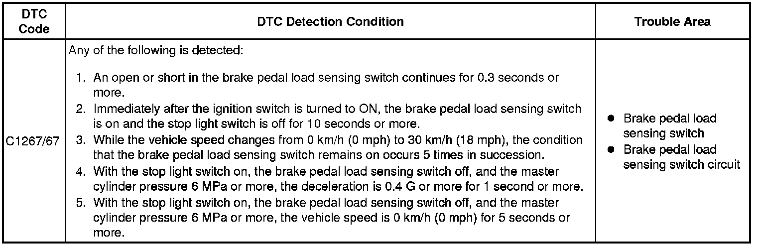 BRAKE CONTROL / DYNAMIC CONTROL SYSTEMS: VEHICLE STABILITY CONTROL SYSTEM: C1267/67: Brake Pedal Load Sensing Switch