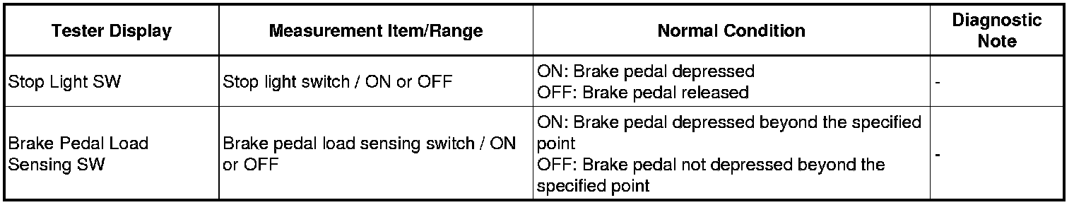 1. READ VALUE USING TECHSTREAM (STOP LIGHT SWITCH AND BRAKE PEDAL LOAD SENSING SWITCH)