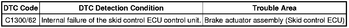 BRAKE CONTROL / DYNAMIC CONTROL SYSTEMS: VEHICLE STABILITY CONTROL SYSTEM: C1300/62: Skid Control ECU Malfunction