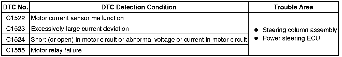 POWER ASSIST SYSTEMS: POWER STEERING SYSTEM: C1522-C1555: Motor Circuit Malfunction