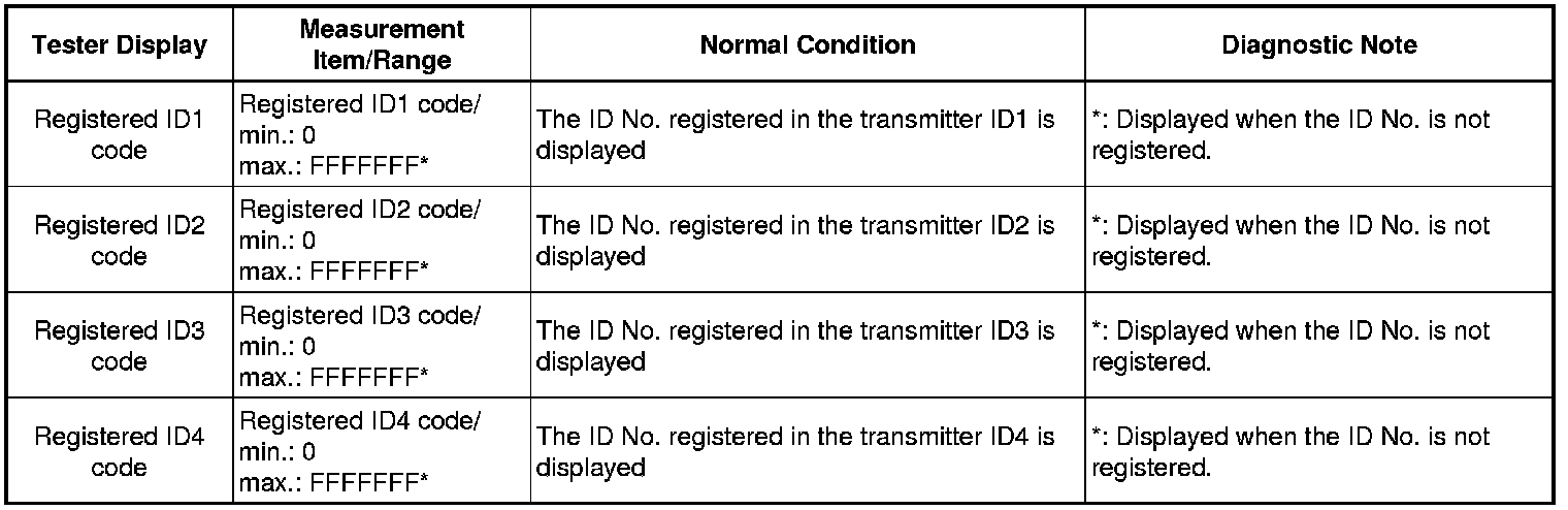 When the ECU detects a transmitter ID code not registered in the ECU, a DTC is output.