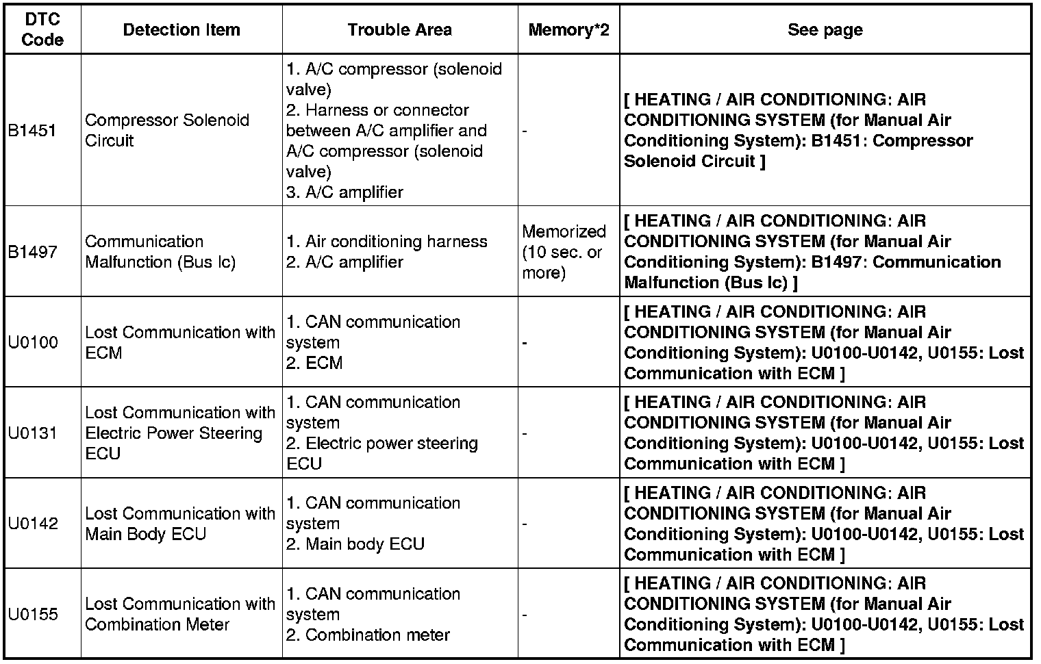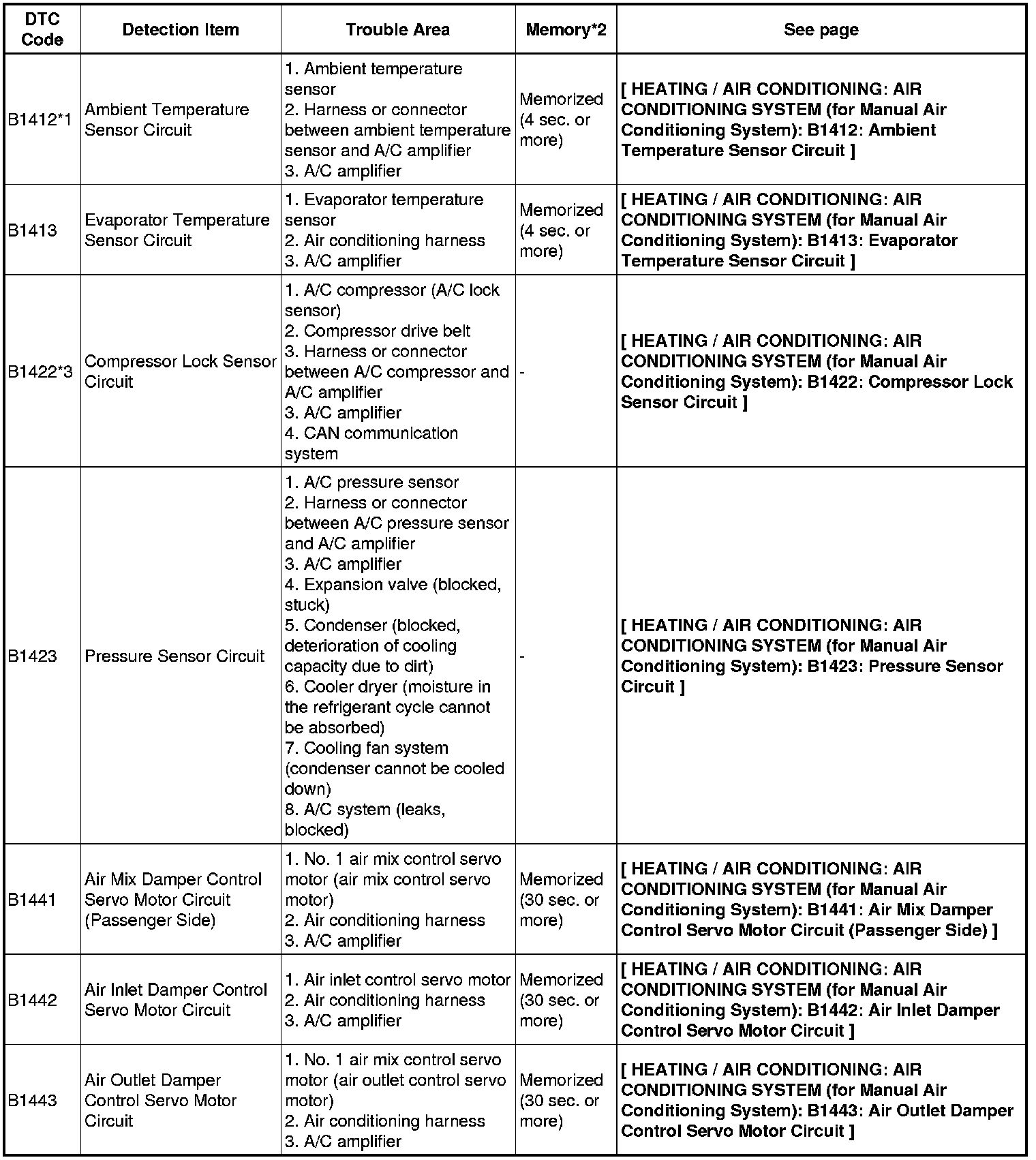 HEATING / AIR CONDITIONING: AIR CONDITIONING SYSTEM (for Manual Air Conditioning System): DIAGNOSTIC TROUBLE CODE CHART