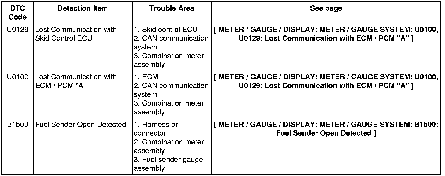 METER / GAUGE / DISPLAY: METER / GAUGE SYSTEM: DIAGNOSTIC TROUBLE CODE CHART