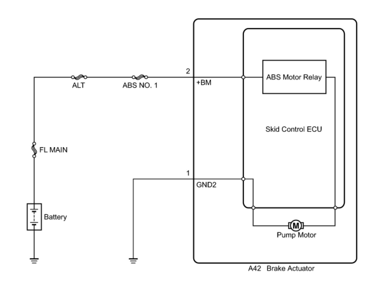The ABS motor relay supplies power to the ABS pump motor. While the ABS is activated, the ECU turns the motor relay on and operates the ABS pump motor.