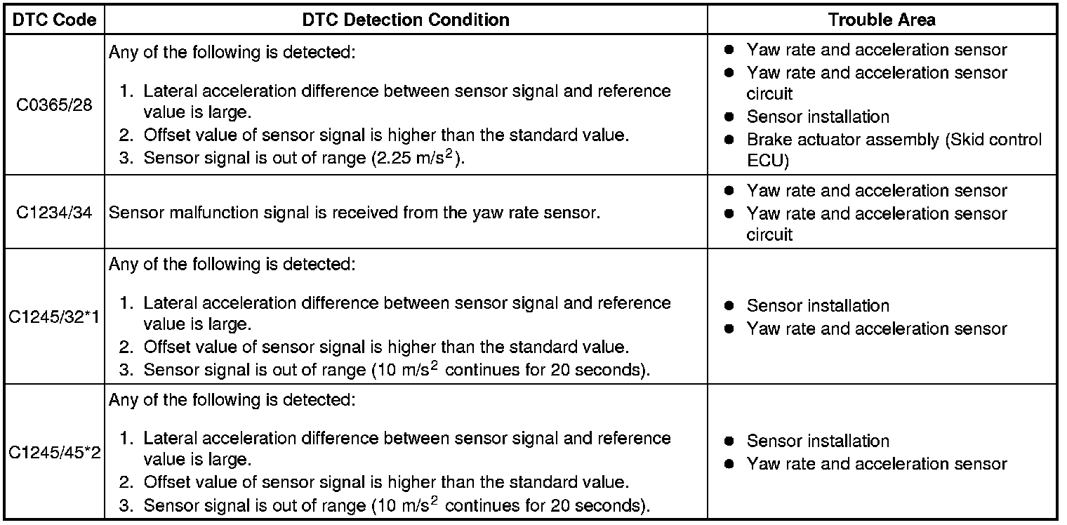 BRAKE CONTROL / DYNAMIC CONTROL SYSTEMS: VEHICLE STABILITY CONTROL SYSTEM: C0365/28, C1234/34, C1245/32, C1245/45: Malfunction in Deceleration Sensor
