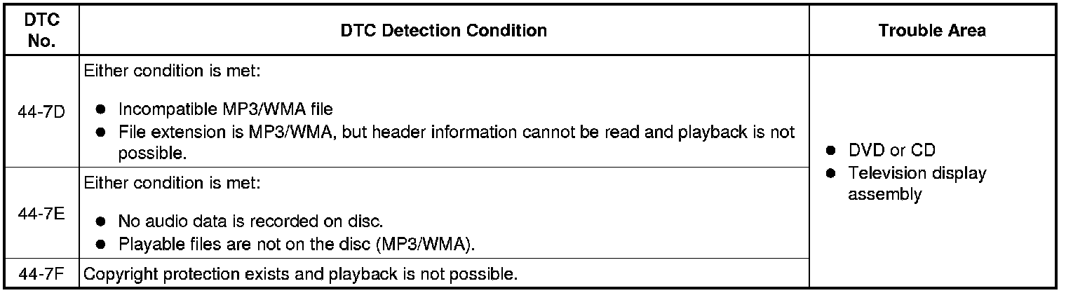 AUDIO / VIDEO: AUDIO AND VISUAL SYSTEM: 44-7D-44-7F: Disc Playback Problem