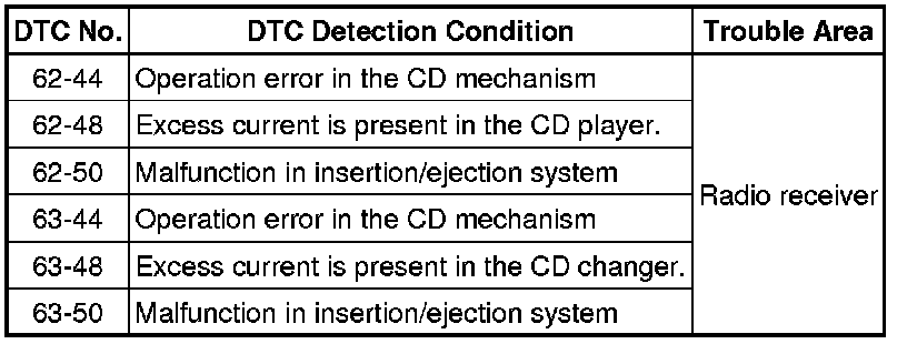 AUDIO / VIDEO: AUDIO AND VISUAL SYSTEM: 62-44, 62-48, 62-50, 63-44, 63-48, 63-50: CD Abnormal