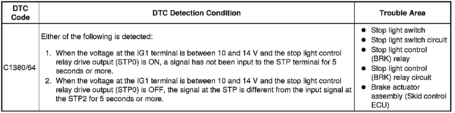 BRAKE CONTROL / DYNAMIC CONTROL SYSTEMS: VEHICLE STABILITY CONTROL SYSTEM: C1380/64: Stop Light Control Relay Malfunction
