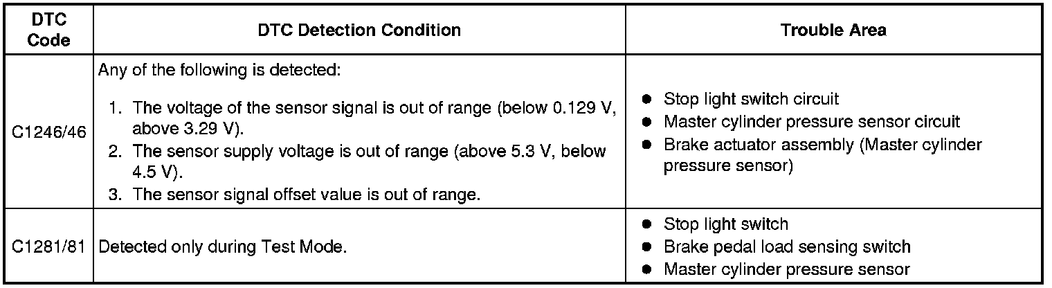 BRAKE CONTROL / DYNAMIC CONTROL SYSTEMS: VEHICLE STABILITY CONTROL SYSTEM: C1246/46, C1281/81: Master Cylinder Pressure Sensor Malfunction