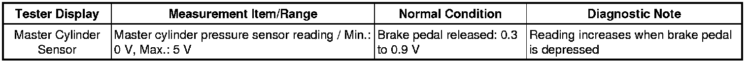 2. READ VALUE USING TECHSTREAM (MASTER CYLINDER PRESSURE SENSOR)