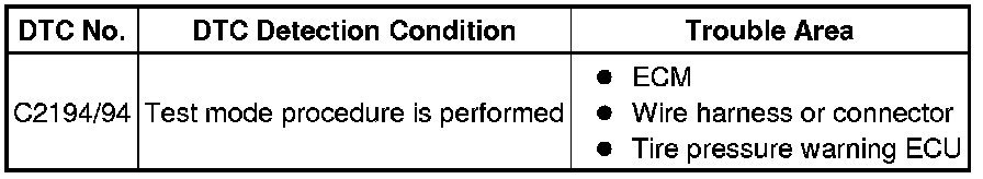 TIRE PRESSURE MONITORING: TIRE PRESSURE WARNING SYSTEM: C2194/94: Engine Speed Signal Error (Test Mode DTC)