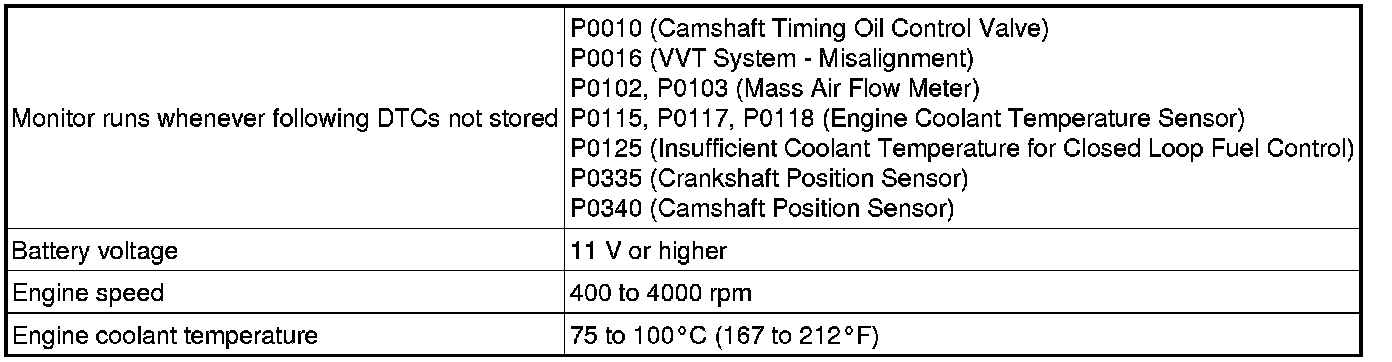 - 2. After the above condition is met, the camshaft timing oil control valve assembly is forcibly activated 10 seconds.