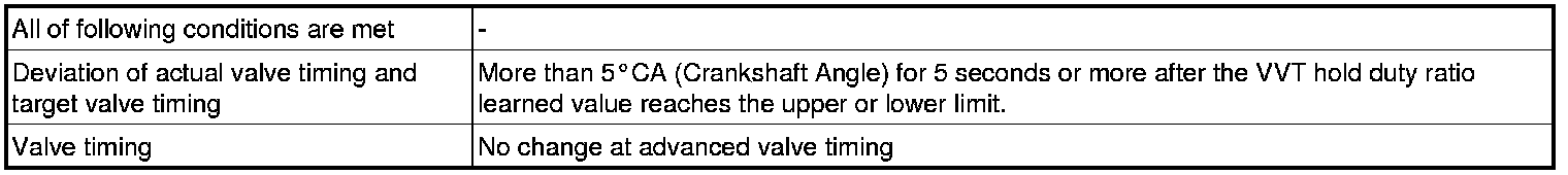 - If the difference between the target and actual intake valve timing is large, and changes in the actual intake valve timing are small, the ECM interprets this as the VVT controller stuck malfunction and stores a DTC.