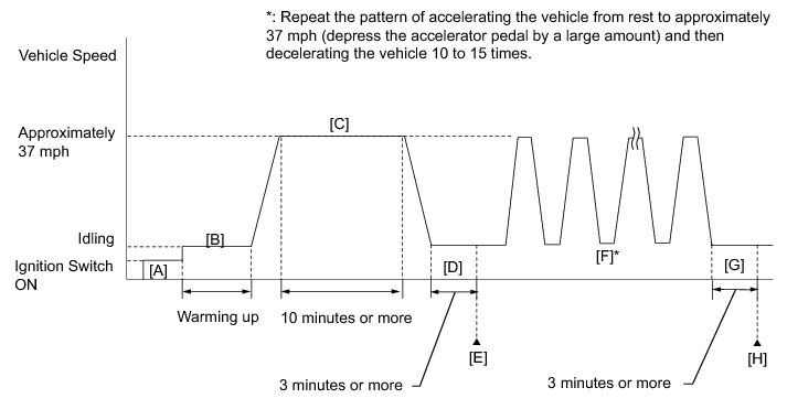 14. Repeat the pattern of accelerating the vehicle from rest to approximately 37 mph (60 km/h) and then decelerating the vehicle 10 to 15 times [F].