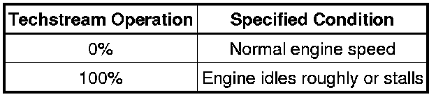 (f) Check the engine speed while operating the camshaft timing oil control valve assembly (for intake camshaft) using the Techstream.