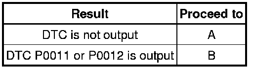 3. CHECK WHETHER DTC OUTPUT RECURS (DTC P0011 OR P0012)