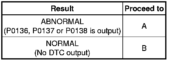 14. CHECK WHETHER DTC OUTPUT RECURS (DTC P0136, P0137 OR P0138 IS OUTPUT AGAIN)